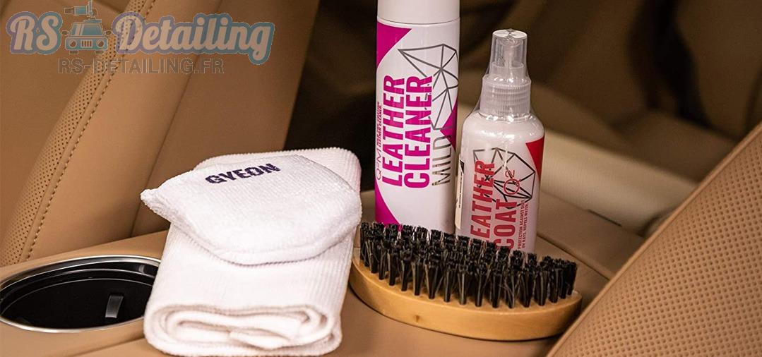 C’est pourquoi les fabricants comme Gyeon proposent une gamme de soins complets dédiés aux cuirs : produit nettoyant fort ou doux (Leather Cleaner) et une protection céramique pour les préserver du temps (Leather Coat & Leather Shield).