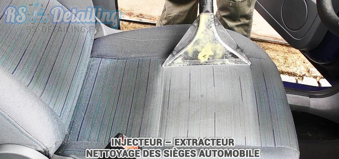 L’eau savonneuse n’est pas toujours très efficace dans le traitement des taches sur les tissus des fauteuils de voiture. Il est souvent nécessaire de faire appel à un détergent spécifique à une utilisation dans un injecteur extracteur et développé pour les textiles automobile.