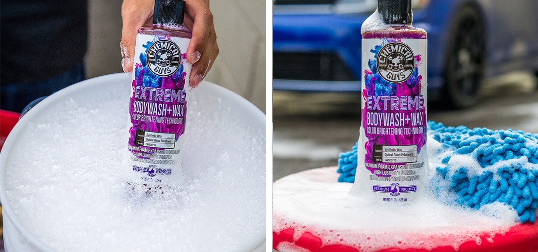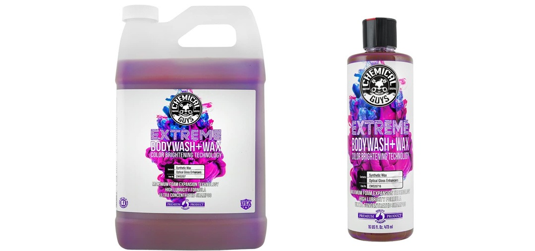 Le shampoing de la marque Chemical Guys «Extreme Body Wash Wax» est un shampoing auto très concentré offrant une très belle finition lors des lavages.